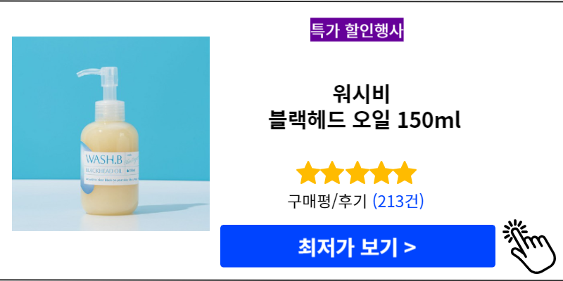 블랙헤드 때문이 고민이시거나 깨끗하게 제거를 원하시는 분들은 워시비 블랙헤드 오일을 꼭 써보시는 것을 추천드립니다.